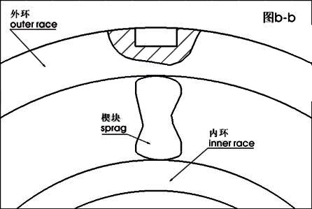 此種型式可設(shè)計出各種形式的楔塊及保持器以滿足各種不同的特性需求。其特點是傳遞矩扭矩大,使用壽命長。(如圖b-b)