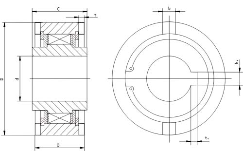 CKC型超越離合器為無軸承支撐外環(huán)兩端面帶鍵槽的楔塊式單向超越離合器 。使用時需配軸承安裝,以承受軸向和徑向負(fù)載,徑向尺寸與標(biāo)準(zhǔn)軸承尺寸相同。內(nèi)環(huán)與軸用鍵連接,外環(huán)兩端面有止動槽用于固定外環(huán)與機架以傳遞轉(zhuǎn)矩。適用于極限轉(zhuǎn)速500~1500r/min,傳遞中等轉(zhuǎn)矩(30N.m~4000N.m),其特點單向自鎖可靠,反向解脫輕便。多用于包裝機械、印刷機械、食品機械、農(nóng)業(yè)機械、醫(yī)療機械和各種斗式提升機、皮帶運輸機、紡織機的機械傳動中。